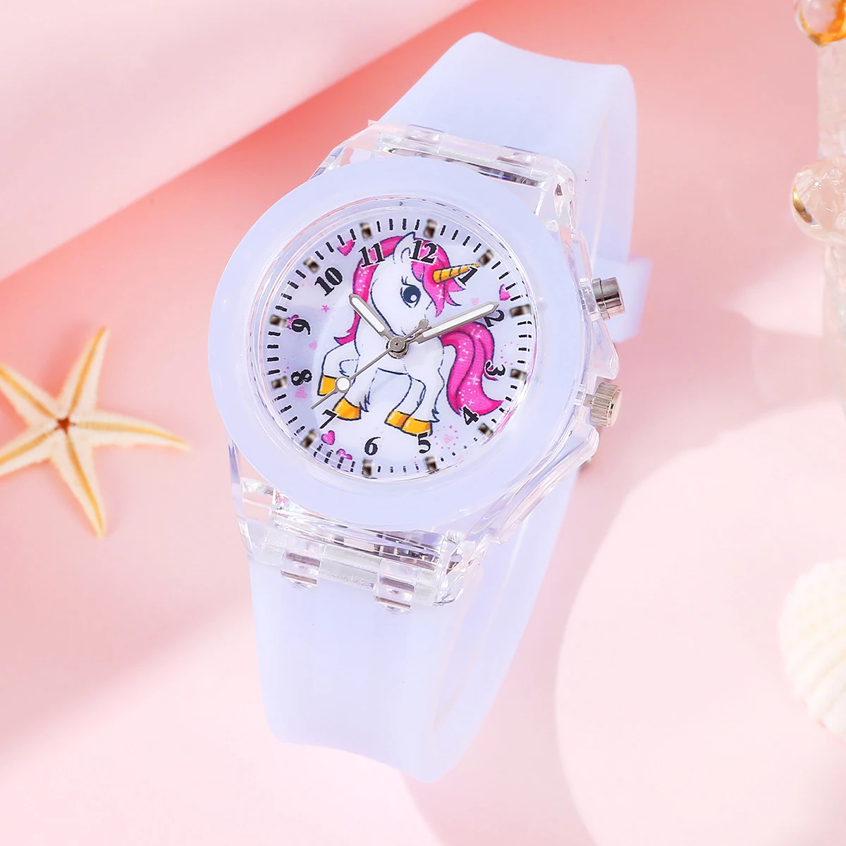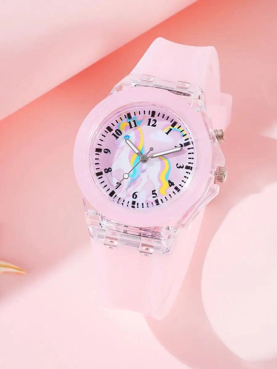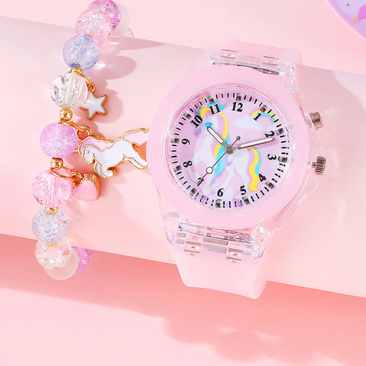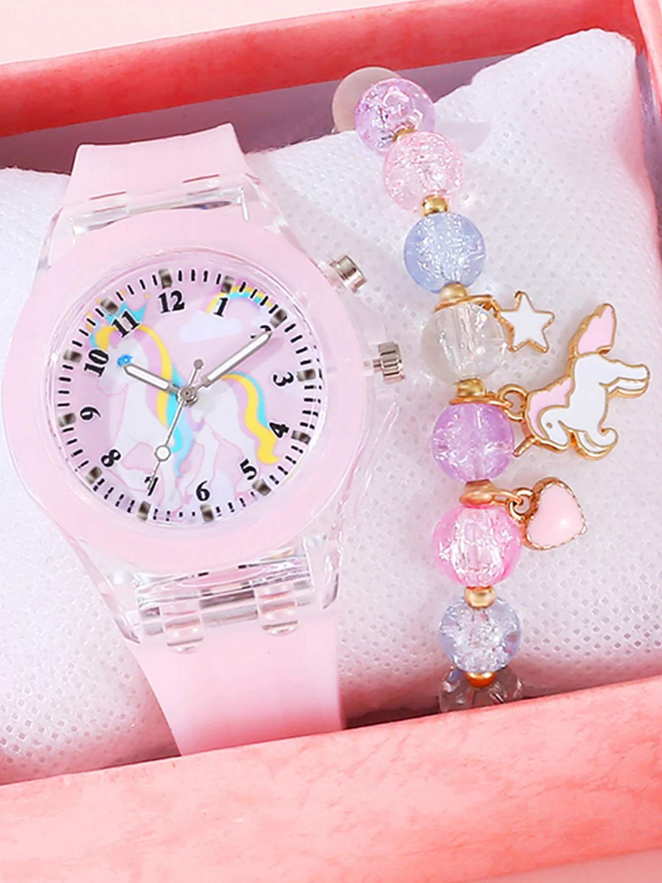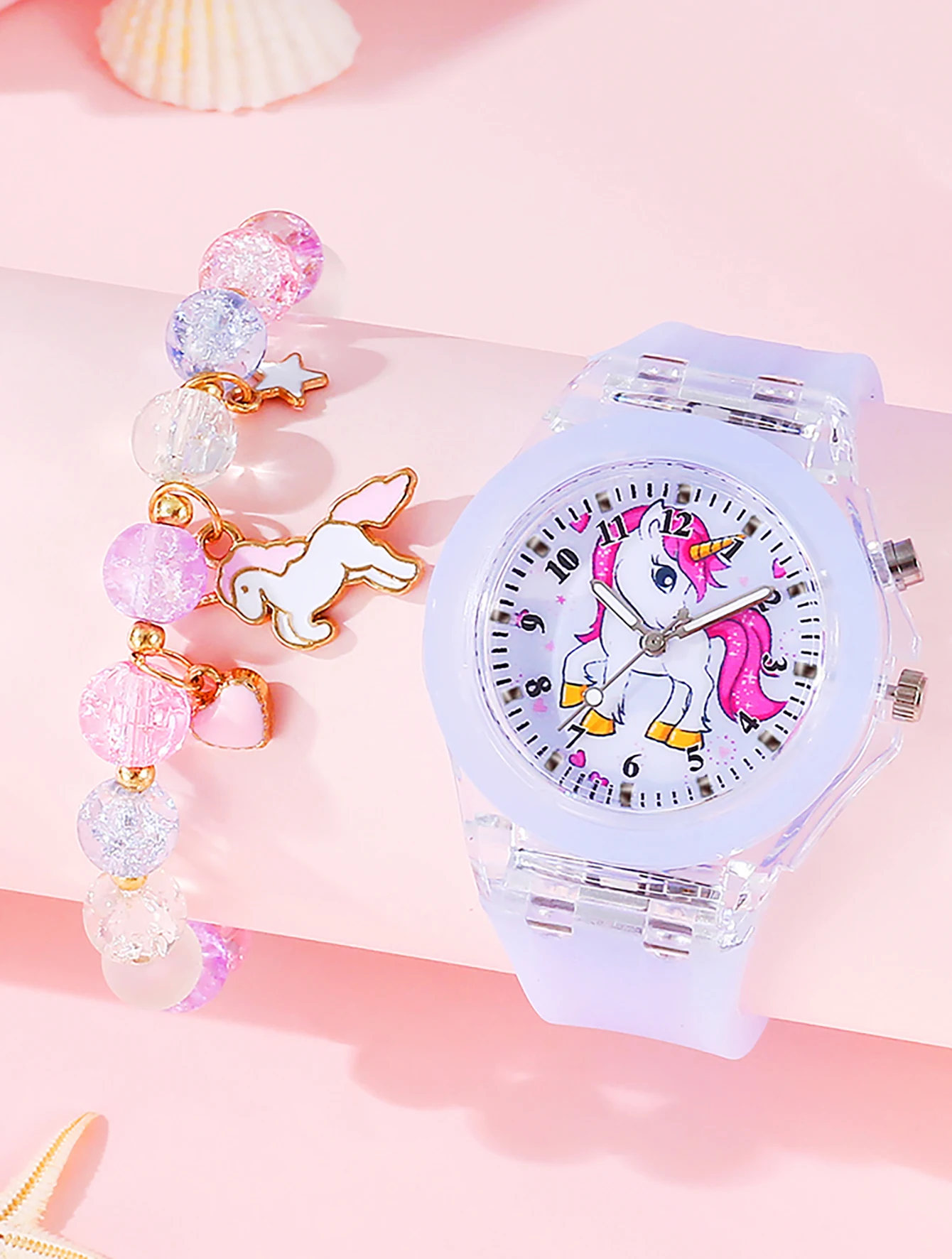 2PCS purple cute silicone Unicorn digital watch and acrylic unicorn bracelet set gift no gift box