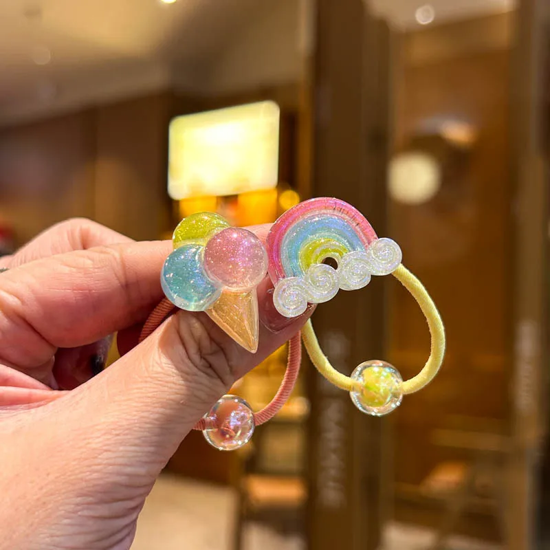 Cute children's unicorn hair band, kindergarten baby 3-6 years old, sweet small hair rope, high elasticity, no hair damage beads