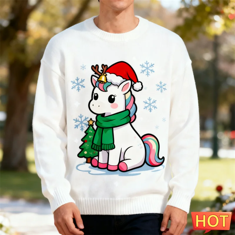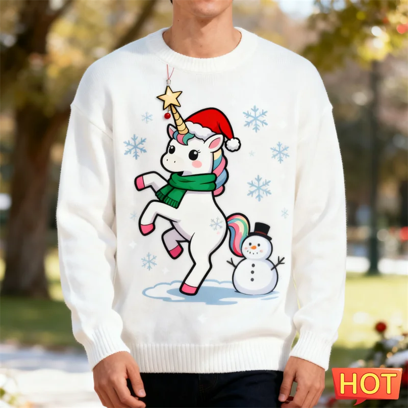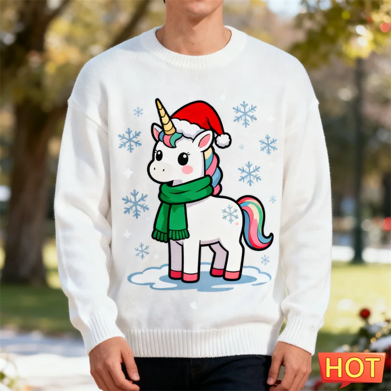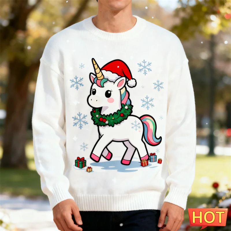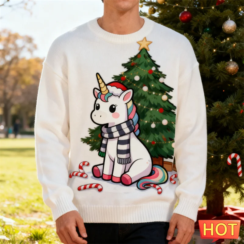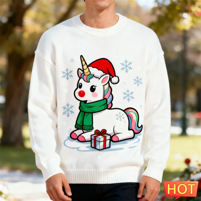 Simple Fashion Unicorn Pattern Ugly Christmas Sweater Trendy Holiday Wear 3D Printed Xmas Sweatshirts Loose Harajuku Pullovers