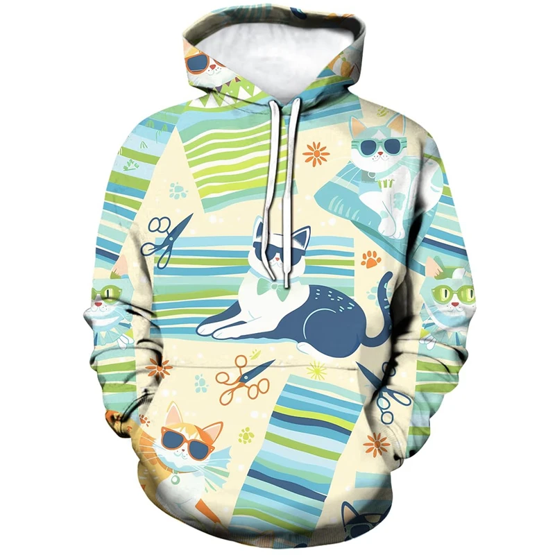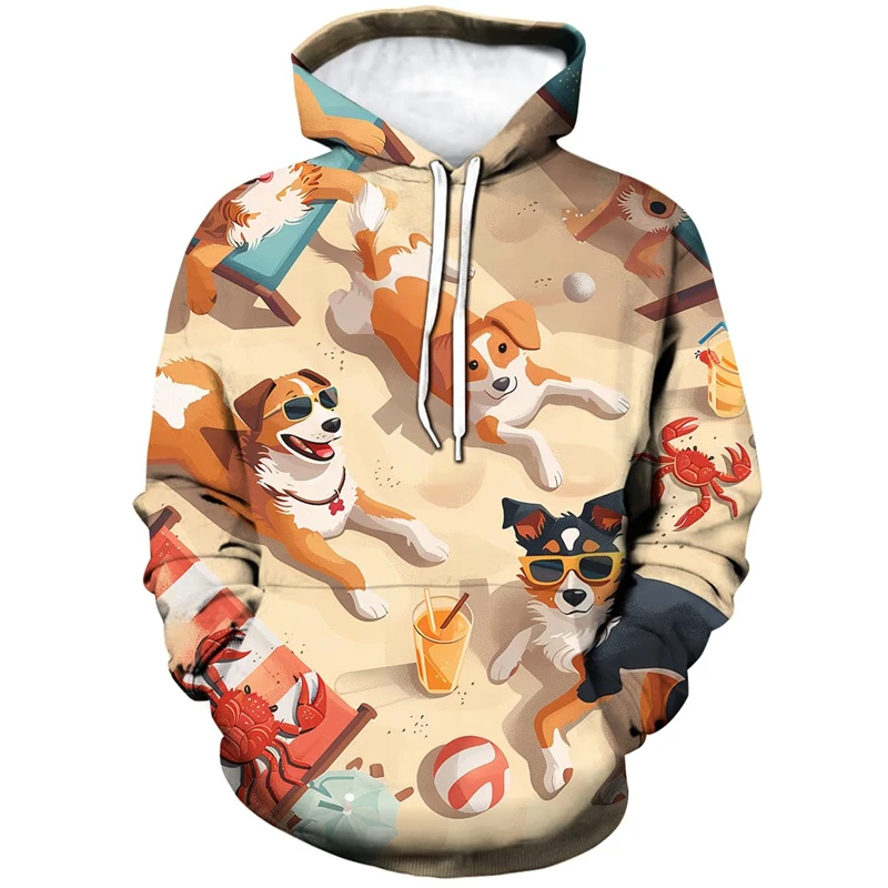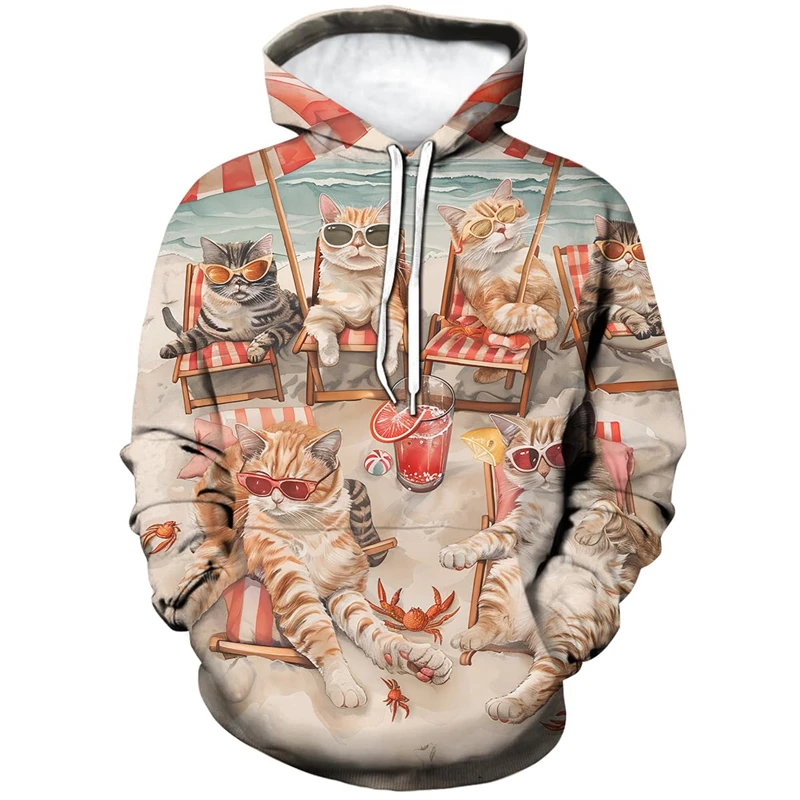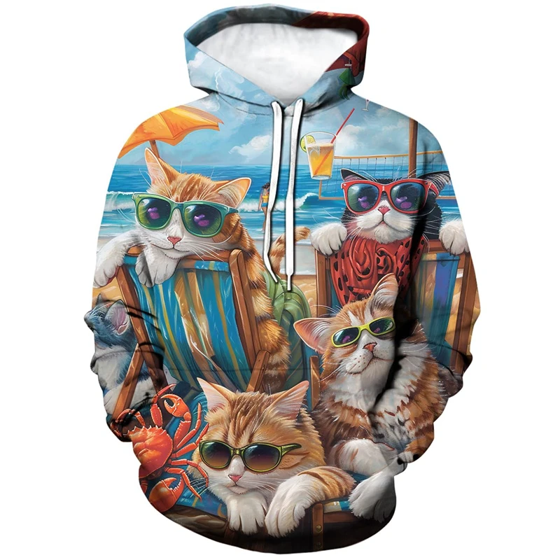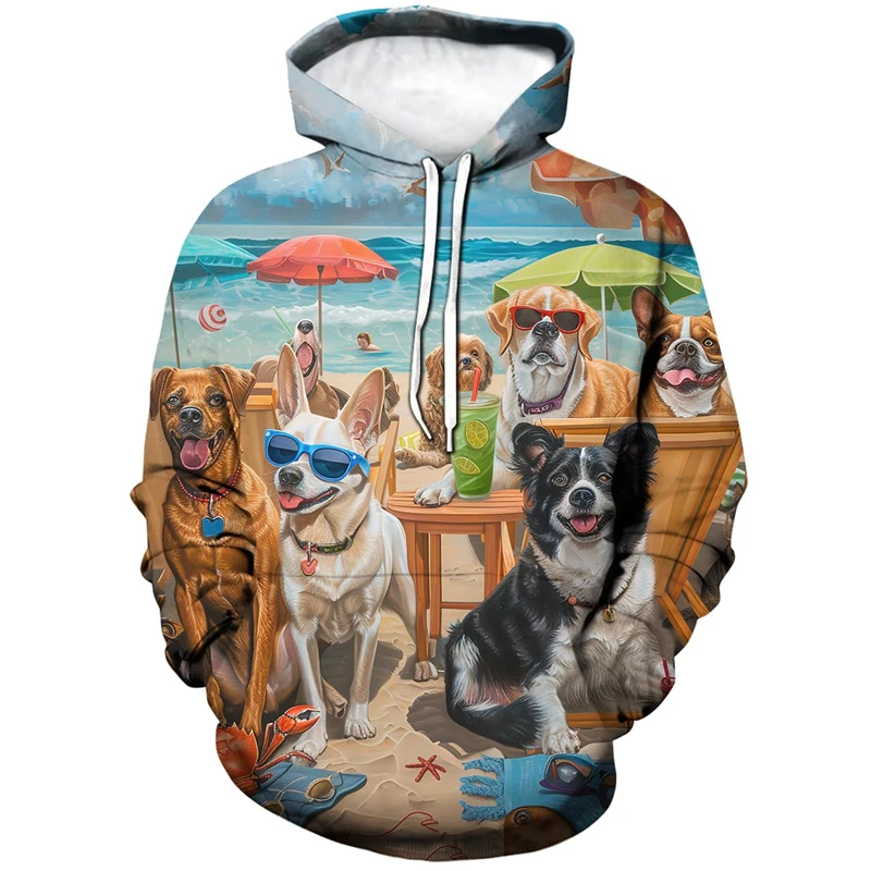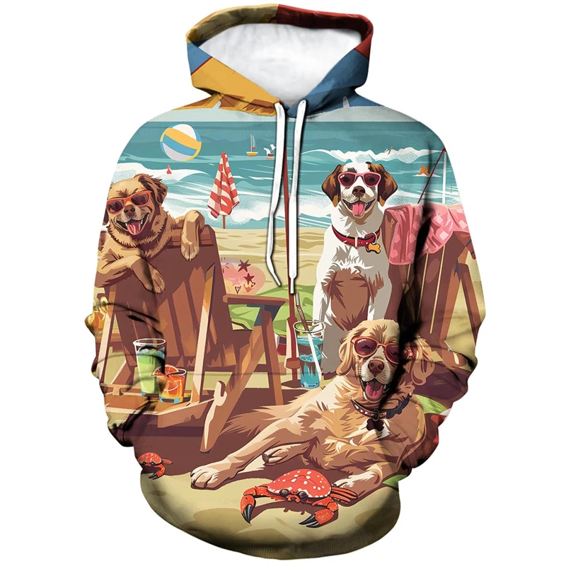 Unisex Adults 3D Dog Cat Printed Hoodies For Men Women Pullover Novelty Sweatshirts With Pockets Cute Pet Beach Hoodie Tracksuit